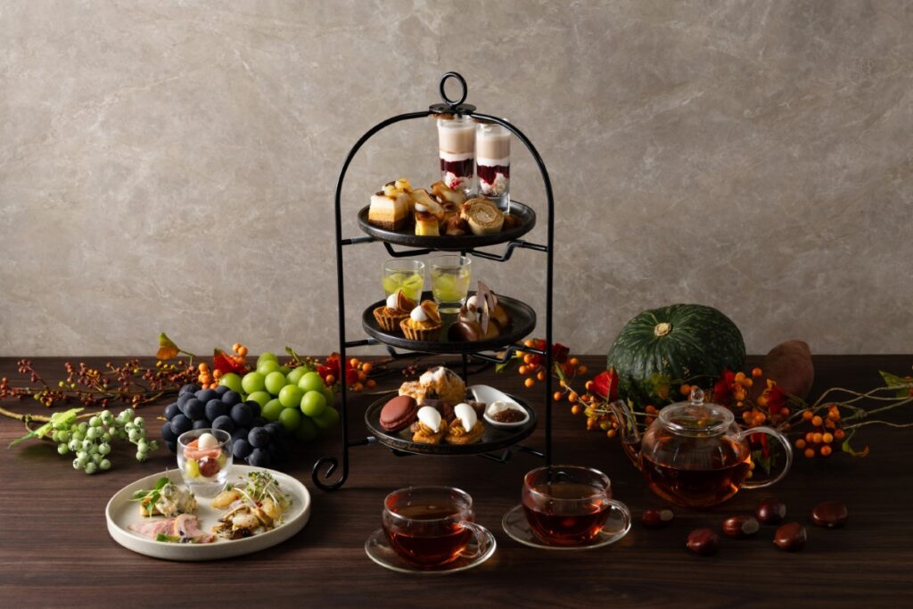 実り豊かな秋の味覚をふんだんに使用した9~11月限定のオータムアフタヌーンティー。秋のスイーツ代表と称してもいいほど愛されるモンブランが、新感覚『飲むモンブラン』で新登場。濃厚な栗のクリームとサクッとした食感が相性抜群の栗マカロンや、しっとりした食感とほのかな苦みが楽しめるキャラメルフィナンシェ、他にもカボチャのクレープやブドウのジュレなど秋の味覚が堪能できるアフタヌーンティーをお楽しみください。