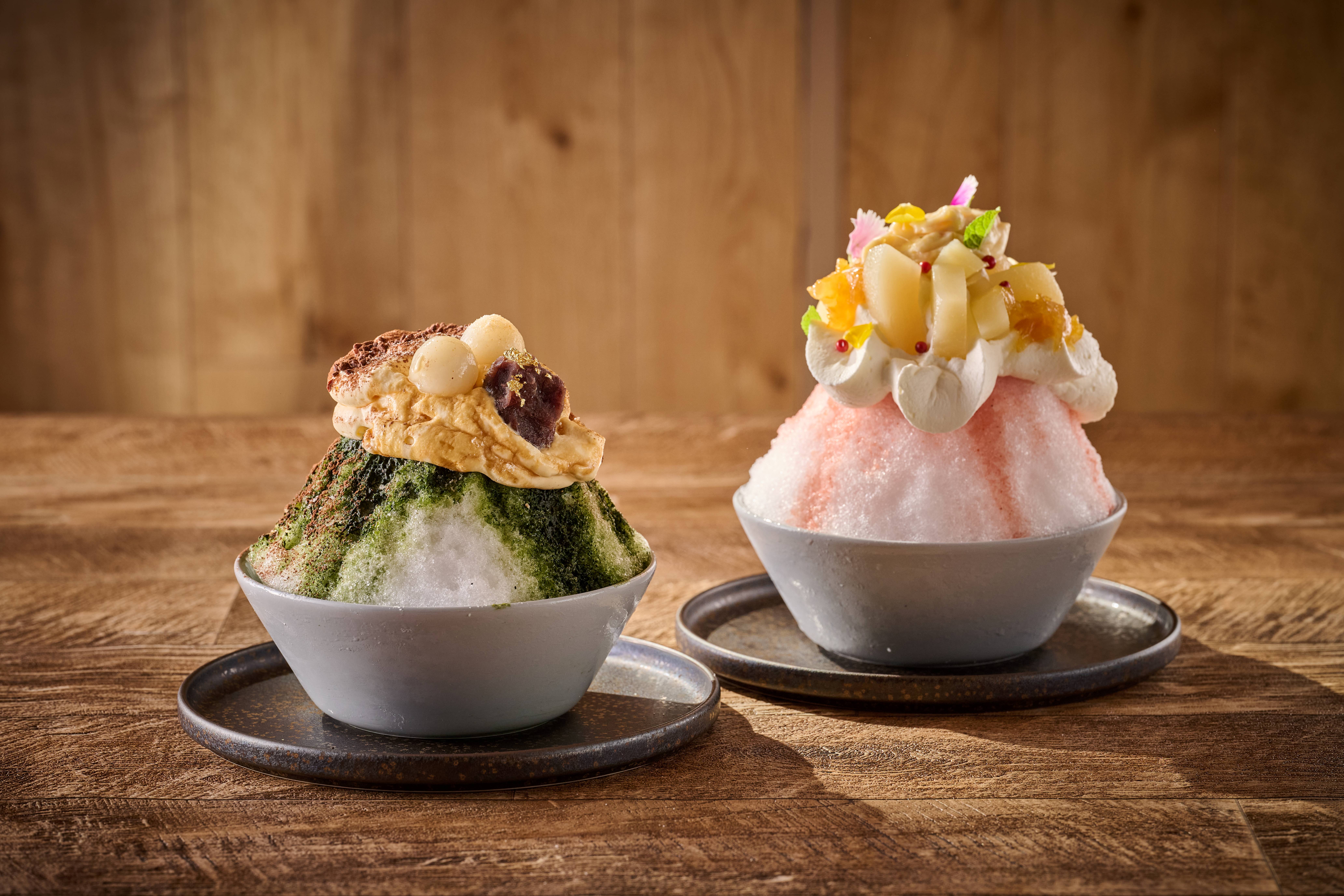 自然豊かな福岡・宮若市で丁寧に育てられた「里山レモン」や瑞々しい桃を組み合わせたかき氷と、熊本・岳間の自家製抹茶ソースとマスカルポーネクリーム、アクセントにはほろ苦いアマゾンカカオを合わせた大人なかき氷の2種が楽しめます。
