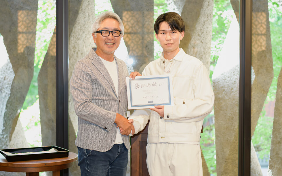 先輩社員代表の祝辞から始まり、ファウンダー・杉元より祝辞、内定証書授与が行われました。