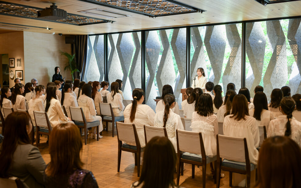 内定者代表の挨拶では、ポジティブドリームパーソンズに入社を決意した思いや