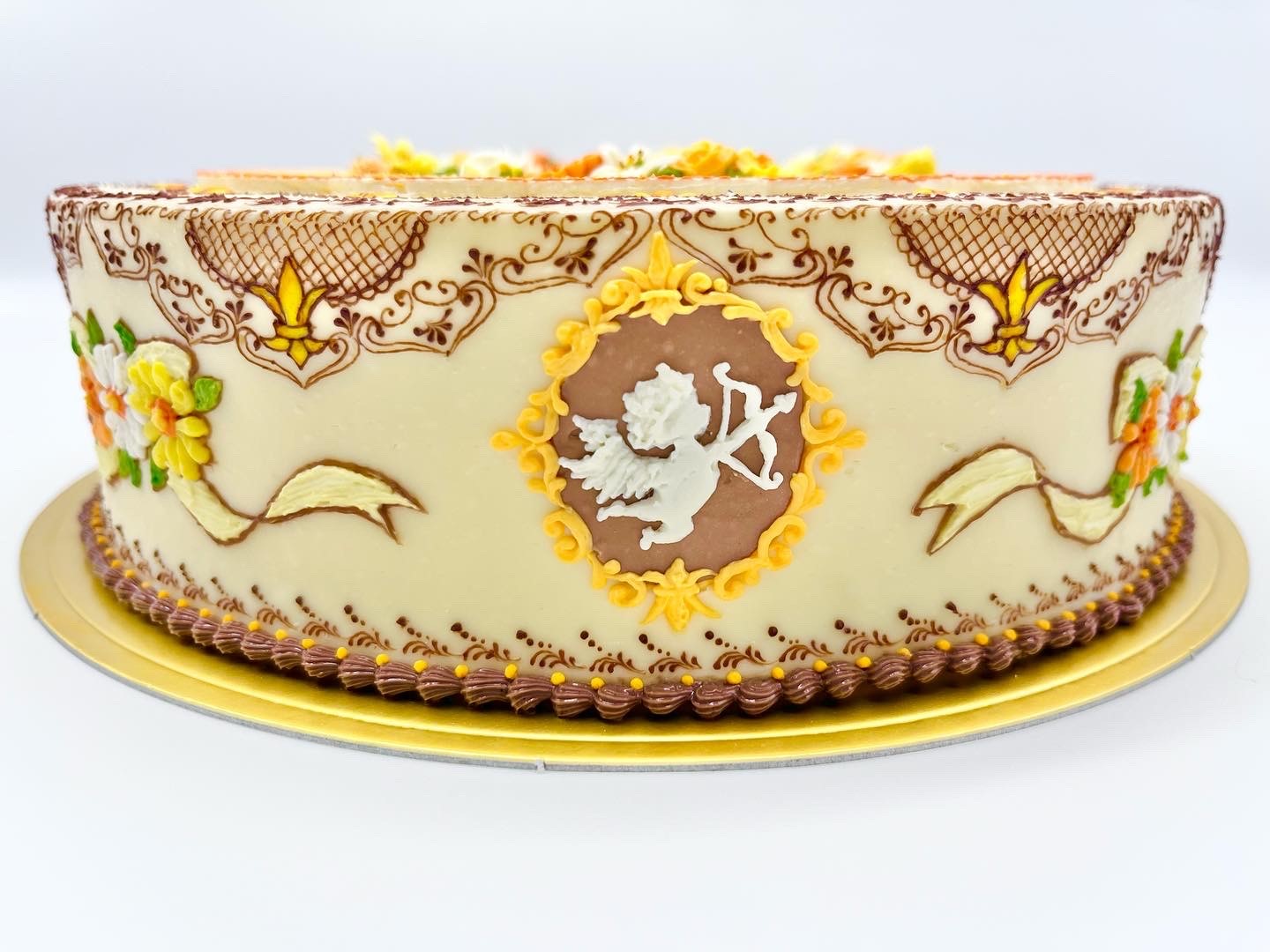 「オレンジショコラ」をテーマにしたケーキは、クリームを使った繊細なデコレーションが施されており、圧巻の出来栄えです。