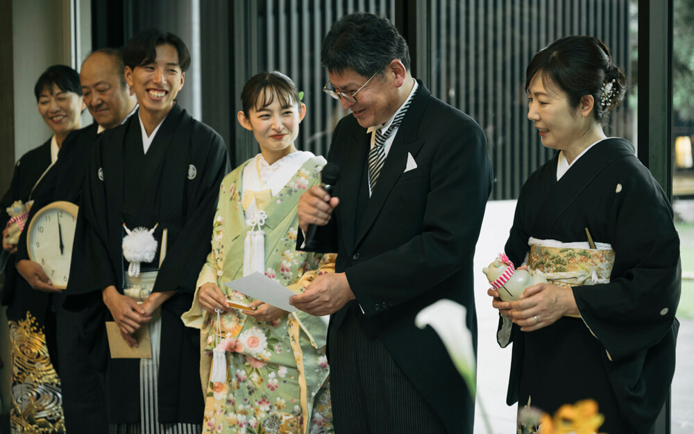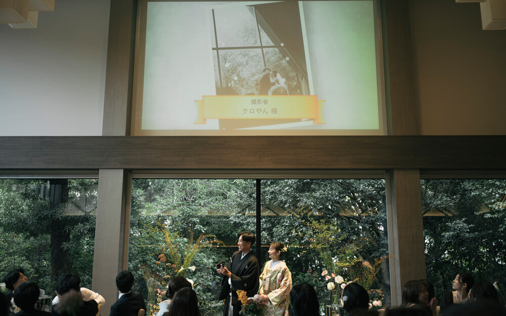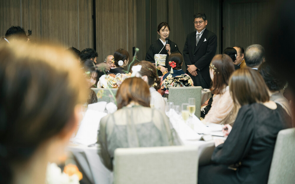 実はこの演出、会場が騒がしくならないよう、ゲストの皆さんに集中して聞いていただけるよう、親御様にご登場いただいたという狙いがあります。また、おふたりの「両親も主役になってほしい」という想いも込められた、特別な演出となりました。