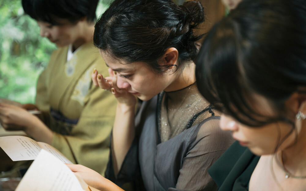 チャペルの照明はいつもより少し暗めにし、司会者からは静かなトーンで「新郎新婦とのこれまでの物語を思い返して、手紙をご一読ください」とアナウンス。挙式の前に手紙を読んでもらい、これまでのことに思いを馳せながら式に臨むことで、より感情移入してもらう狙いです。